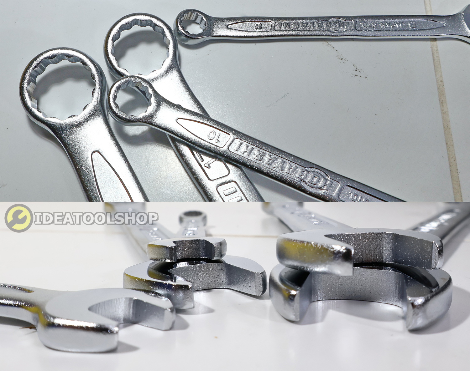- ทั้งชุดเป็นเนื้อเหล็ก CR.V ชุบเงาผลิตตามมาตราฐาน ญี่ปุ่น (JAP STD.) แข็งแรง คงทน และสวยงาม
