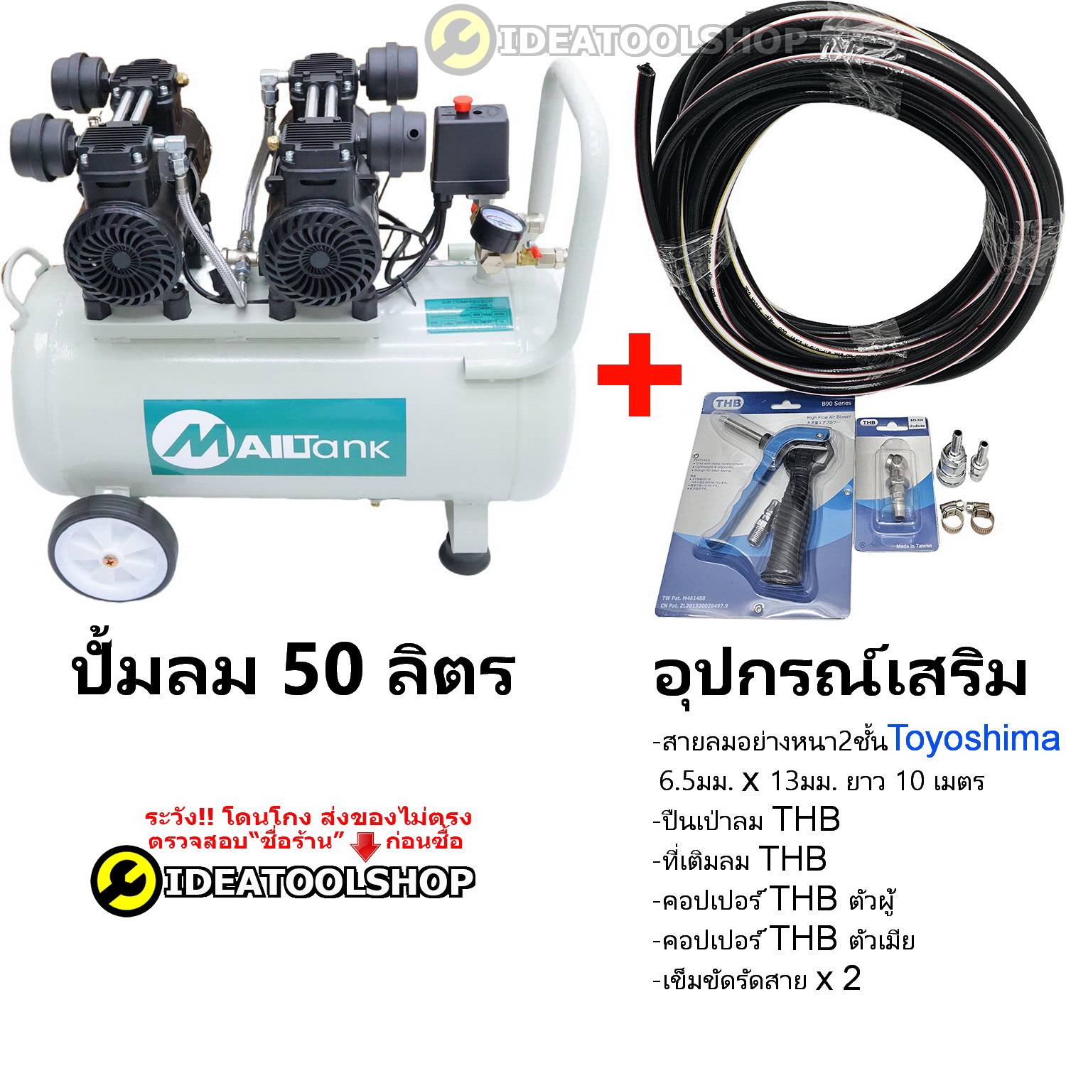 !!!รุ่นใหม่ปั้มไว!!! ปั๊มลม50ลิตร [รับประกัน6เดือน] Mailtank OilFree 50 ลิตร 1080 วัตต์ ปั้มลม แบบ เสียงเงียบ SH40 50L.
