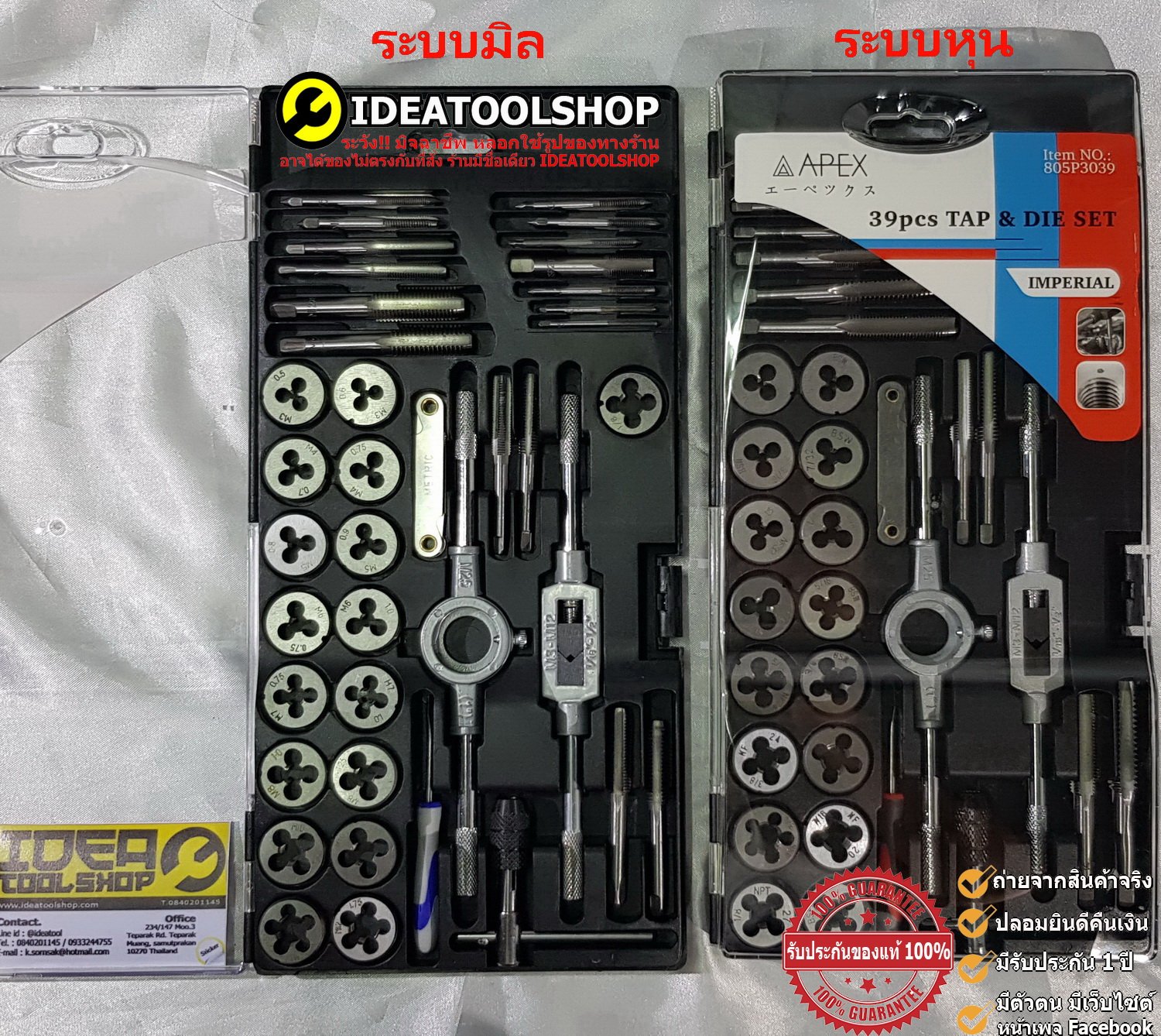ชุดดอกต๊าปและดายเกลียว APEX 39 ชิ้น พร้อมอุปกรณ์