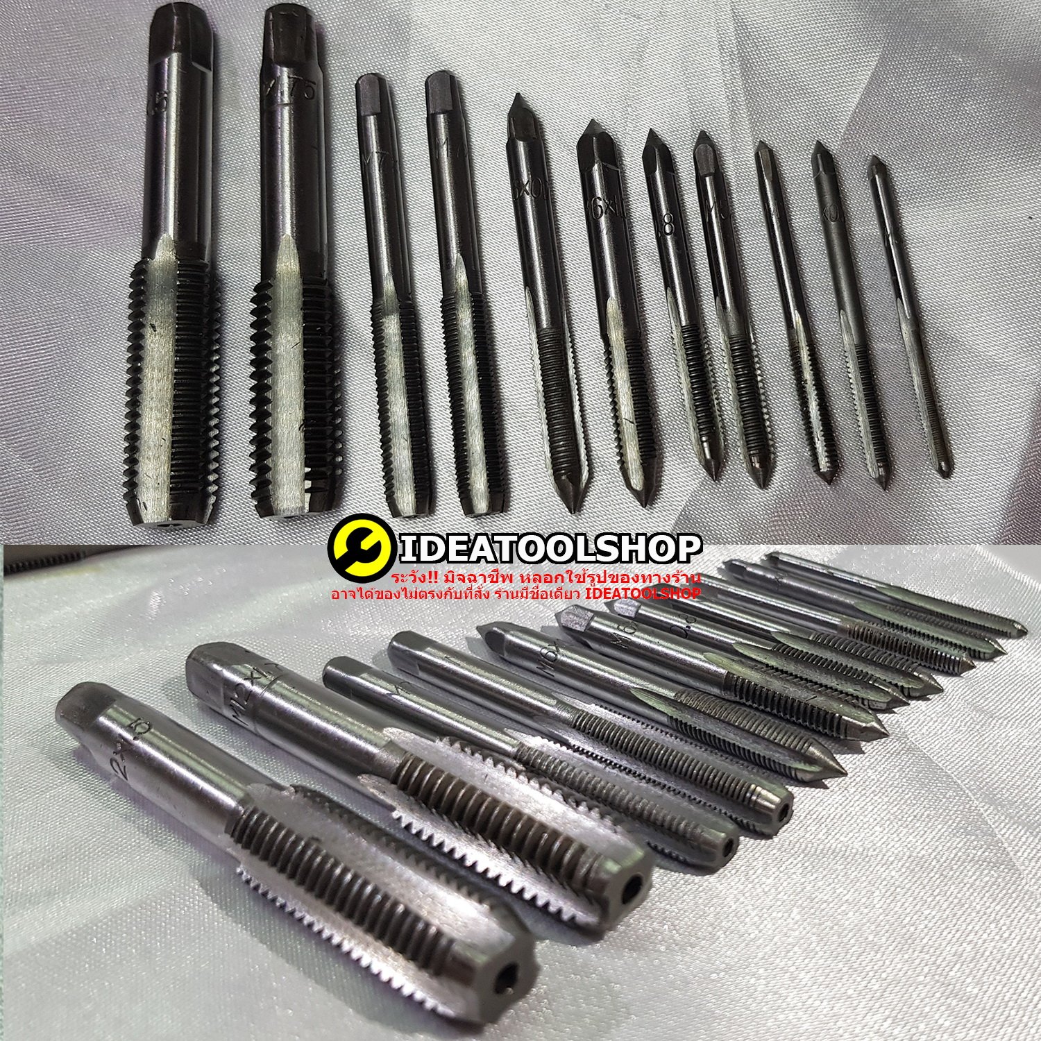 -16 Metric taps size 3x0.6, 4x0.7, 4x0.75, 5x0.8, 5x0.9, 6x0.75, 6x1.0, 7x0.75, 8x10, 8x1.25, 10x1.25, 10x1.5, 12x1.5, 12x1.75