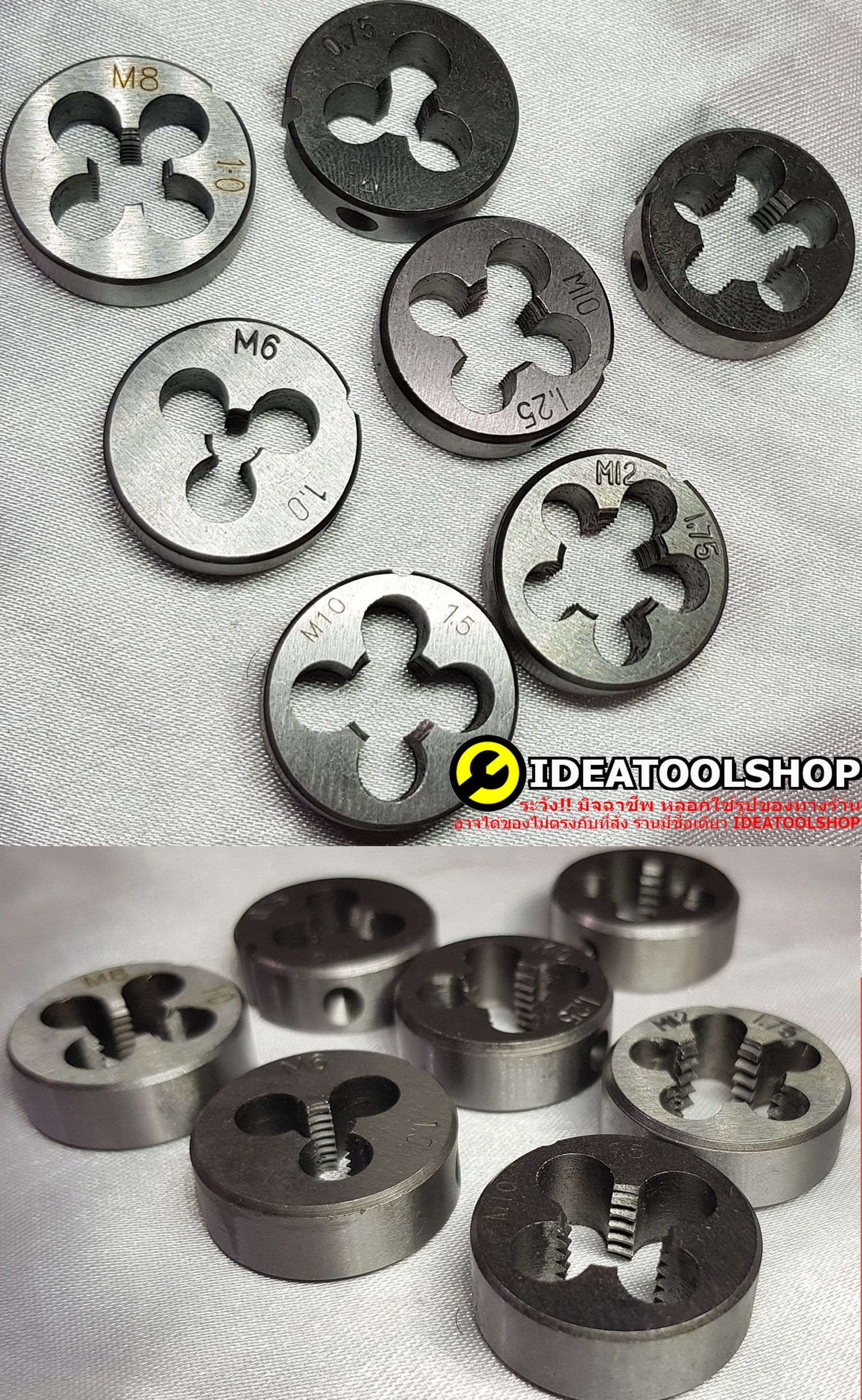 -16 Metric dies 3x0.6, 4x0.7, 4x0.75, 5x0.8, 5x0.9, 6x0.75, 6x1.0, 7x0.75, 8x10, 8x1.25, 10x1.25, 10x1.5, 12x1.5, 12x1.75