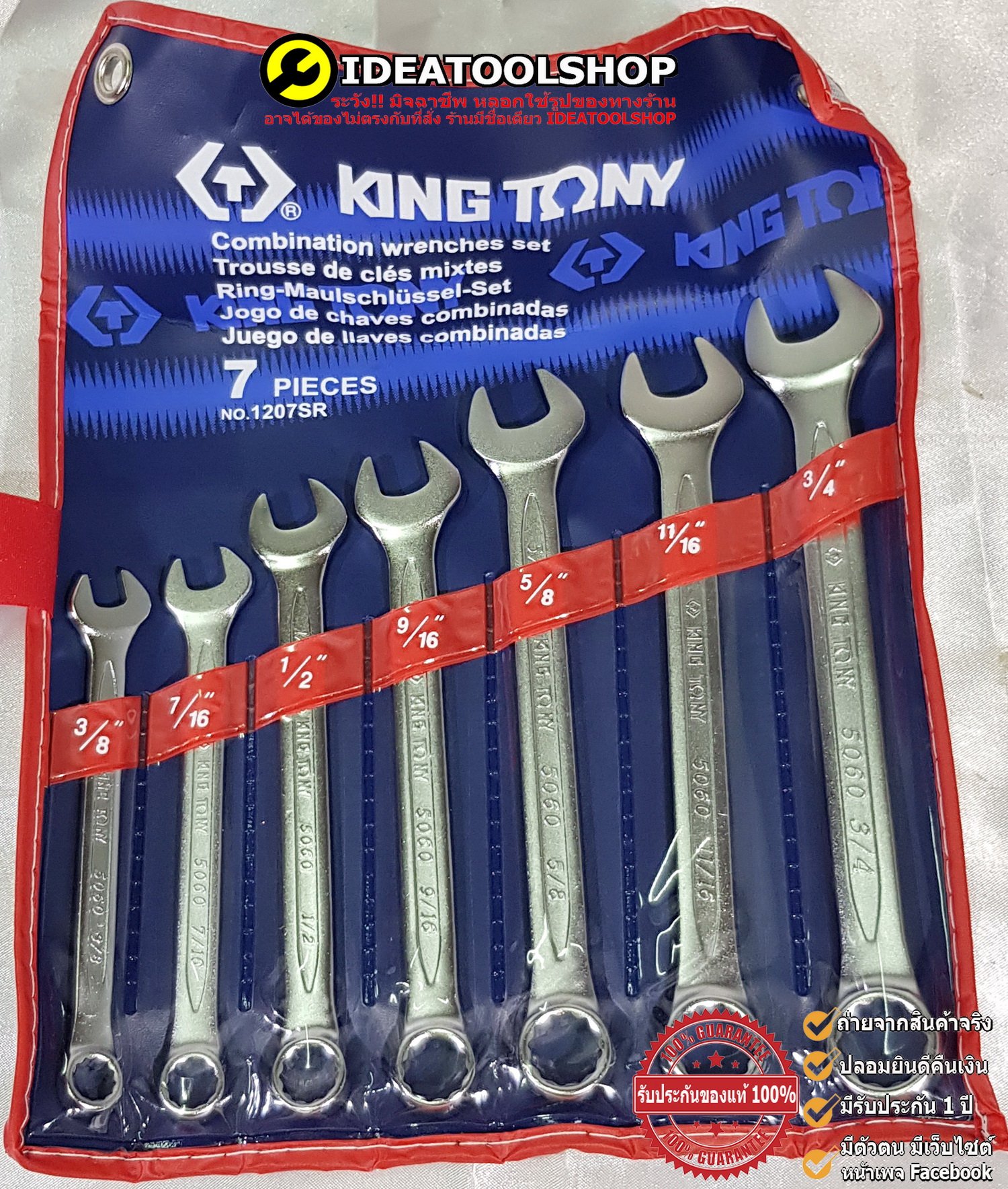 KingTony ประแจแหวนข้างปากตาย ชุด 7 ชิ้น ขนาด 3/8" - 3/4" รุ่น 1207SR ( Combination Wrench Set ) คิงโทนี่ ไต้หวั่นแท้ 100%