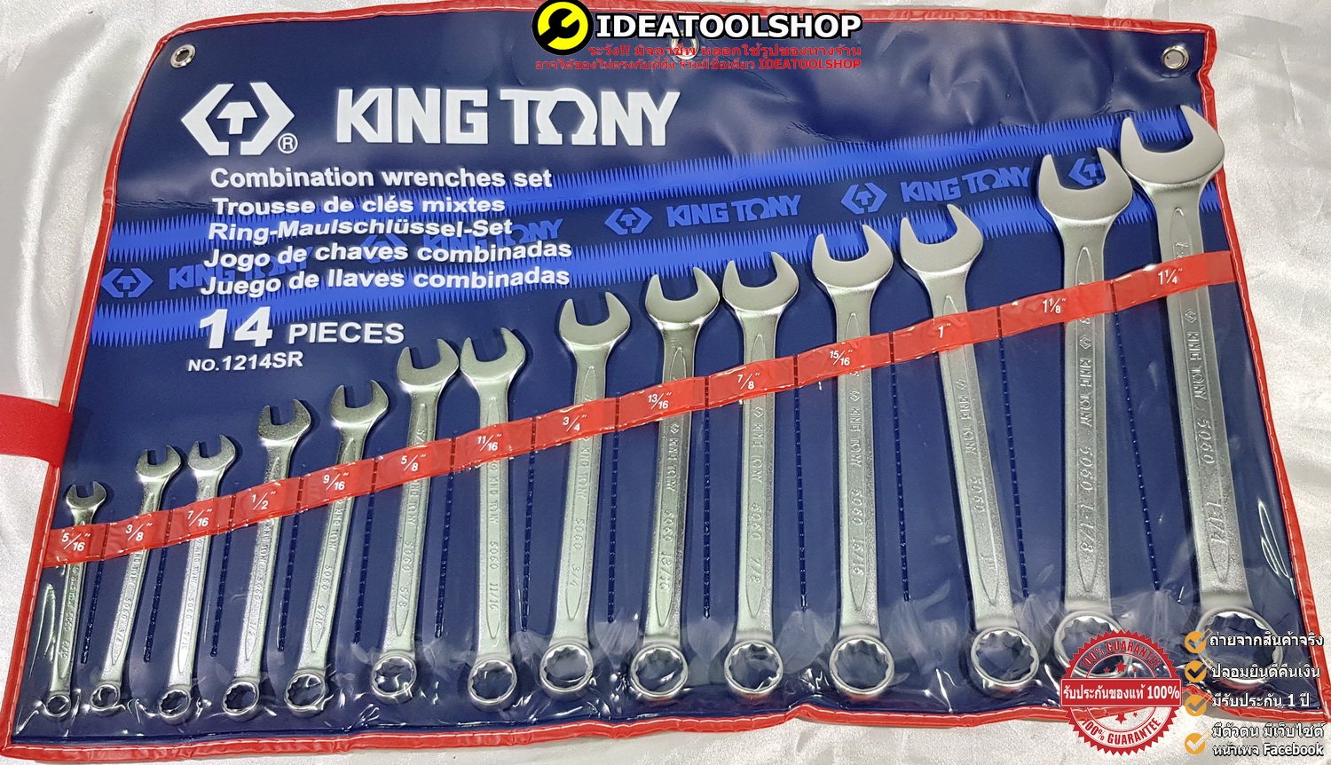 KingTony ประแจแหวนข้างปากตาย ชุด 14 ชิ้น ขนาด 5/16''- 1 1/4'' รุ่น 1241SR ( Combination Wrench Set ) คิงโทนี่ ไต้หวั่นแท้ 100%
