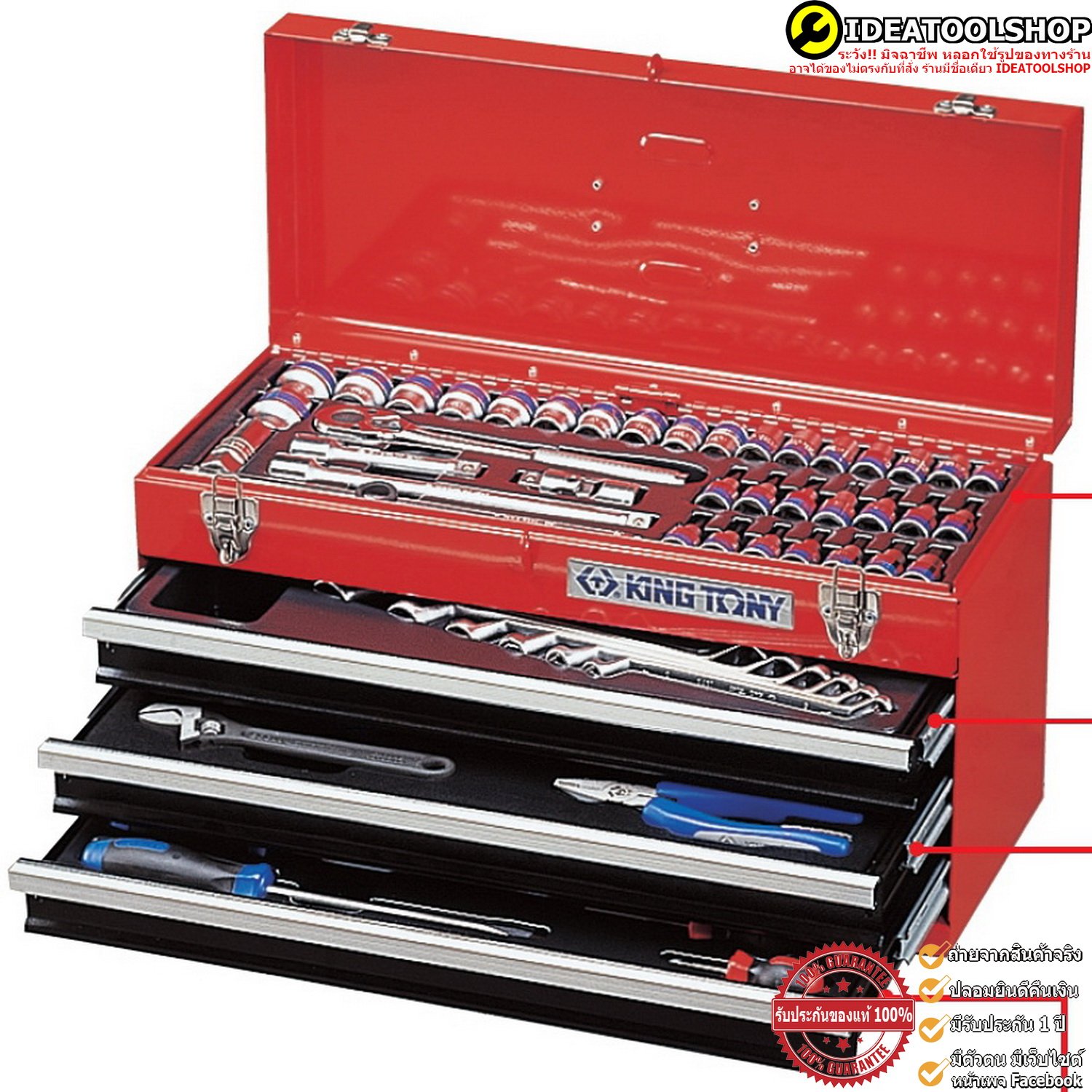ของแท้!!! ตู้เครื่องมือ 3 ลิ้นชัก KINGTONY 69 ชิ้น/ชุด รุ่นงานหนัก!!! 01-069MR เปลี่ยนจาก 901-071MR คิงโทนี่ ชุดบล้อก ชุดบล๊อก บล็อก บล็อค