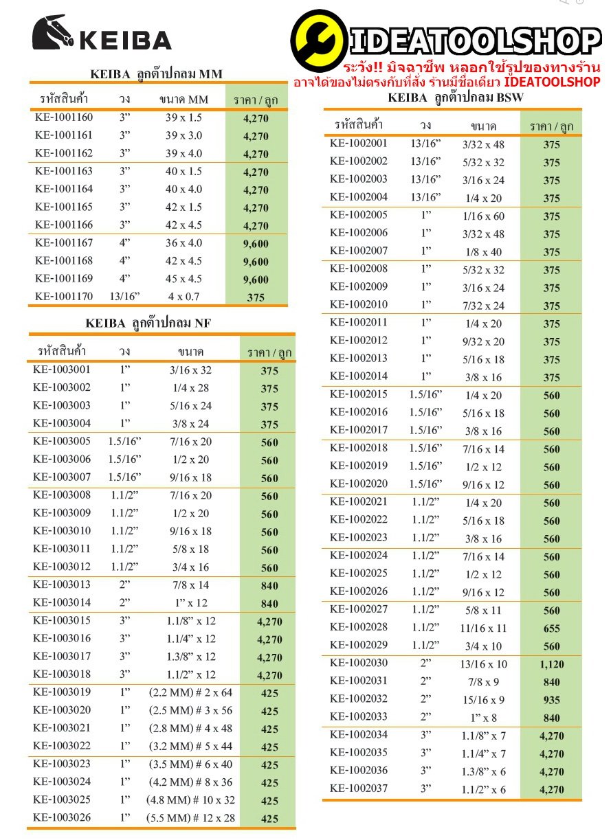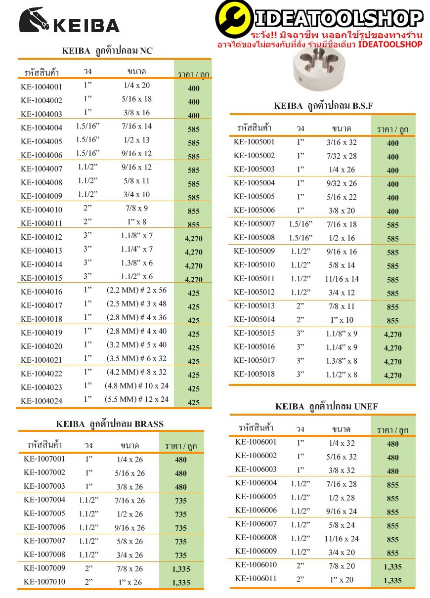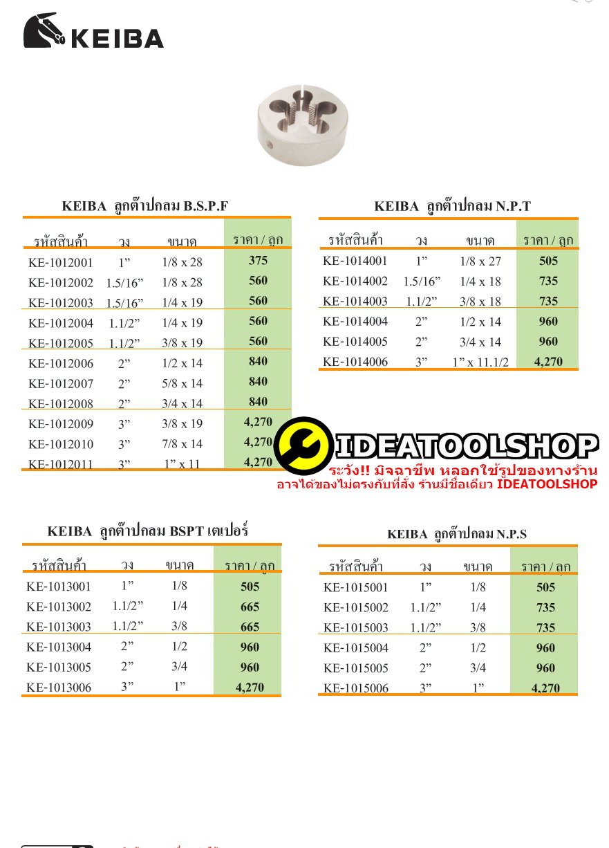 ของแท้!! JAPAN ลูกดายเกลียว DIE [แบบ หุน นิ้ว ] KEIBA มีครบทุกเบอร์ ดาย ต๊าปตัวเมีย W NF NC B.S.P.F. N.P.T. BSPT BSW TAP