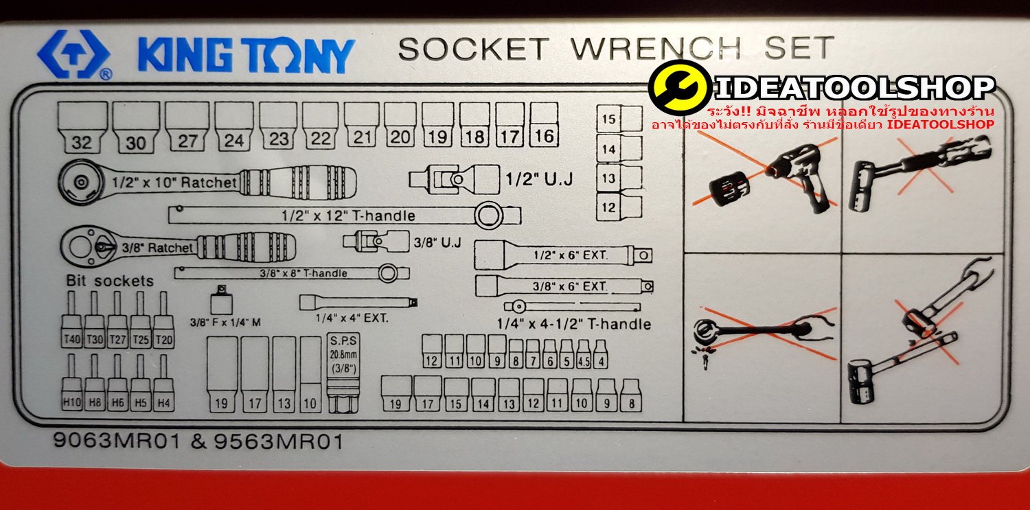 บ๊อกชุดผสม 62 ชิ้น KINGTONY 9563MR ลูกบล๊อค 1/4" + 3/8" + 1/2" DR. socket set บล๊อกชุดไต้หวัน (TAIWAN)