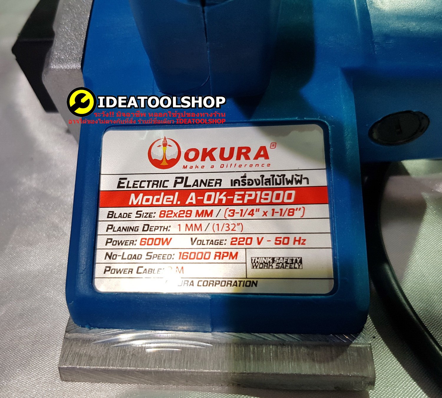-OKURA กบไสไม้ ไฟฟ้า หน้า 3นิ้ว EP1900 ขนาด 82 มม. ( 3-1/4" ) ( BLUE )