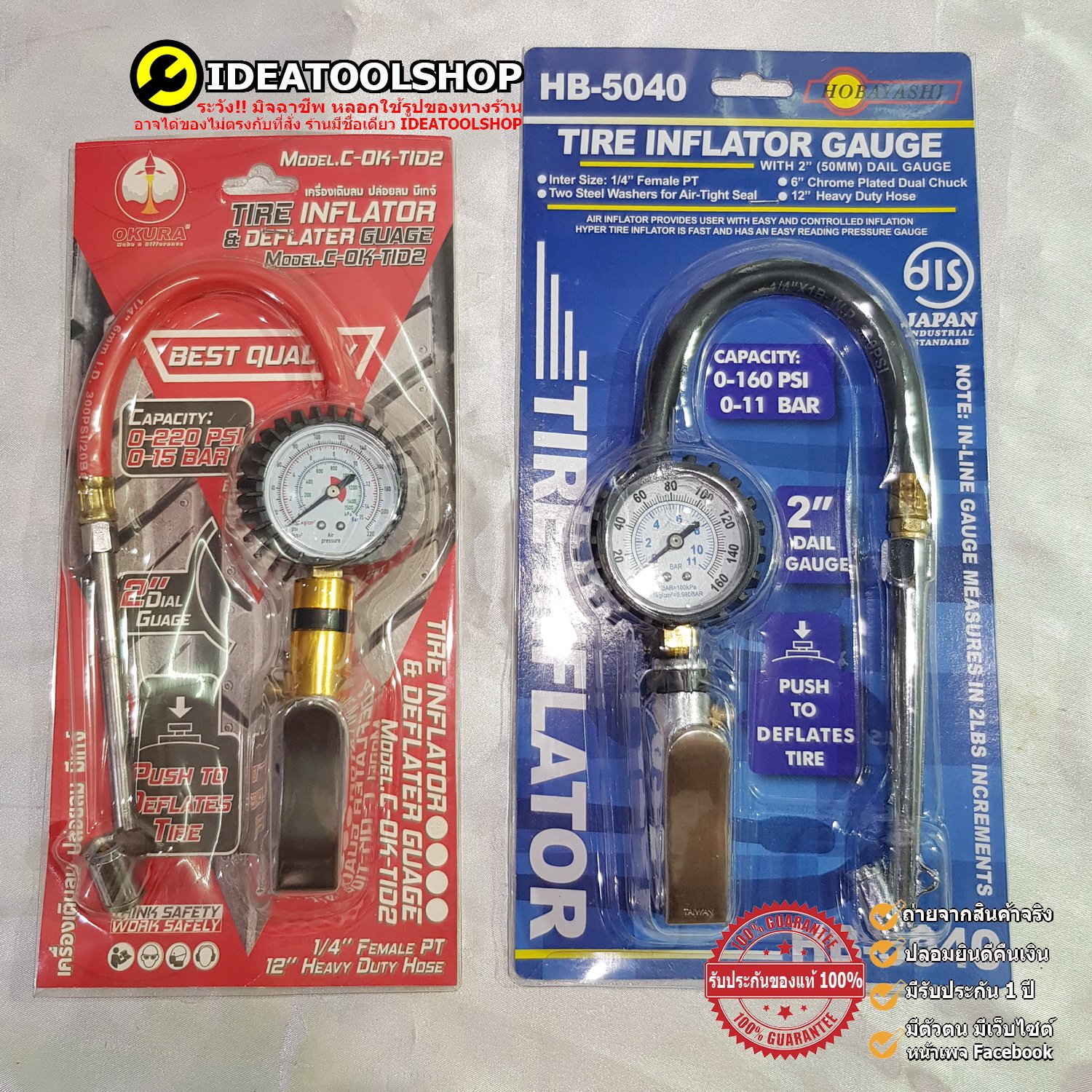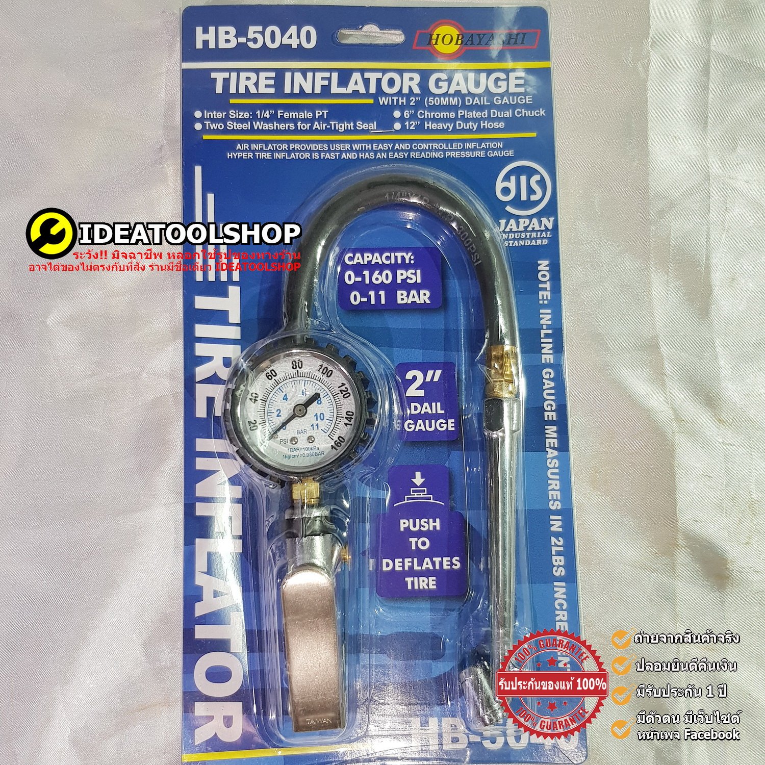 เกจวัดลมพร้อมสายหัวเติมลม/ปืนเติมลมแบบยาว รุ่น HOBAYASHI-HB-5040 จำนวน 1 ตัว