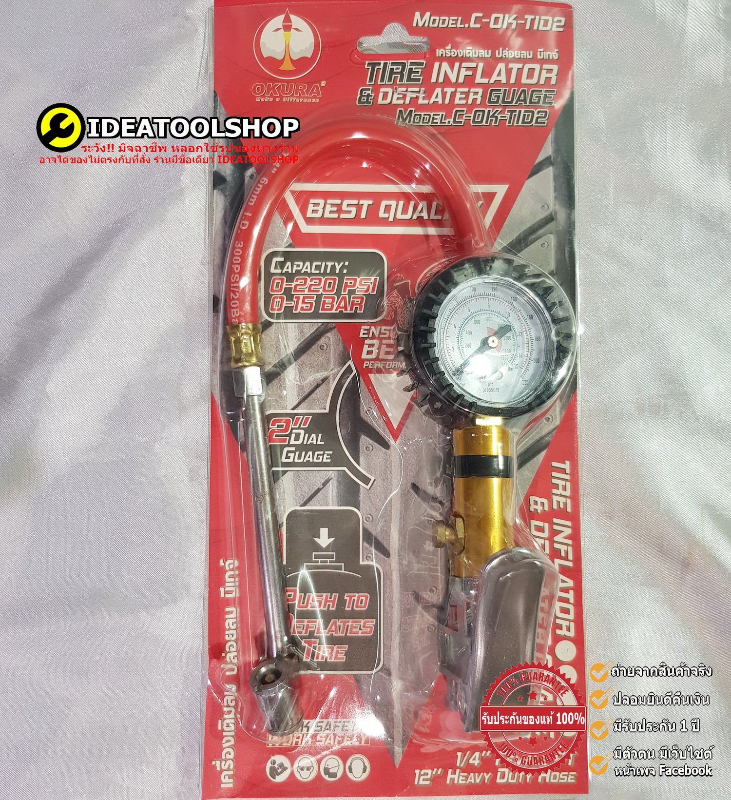 OKURA หัวเติมลม + เกจ์วัดลมสายอ่อน รุ่น C-OK-TID2