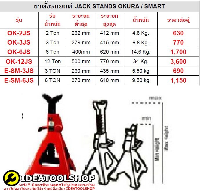 รุ่นงานหนัก!! [ 2ตัว ] ขาตั้งตัวใหญ่ 6 ตัน OKURA ขาตั้งรถยนต์ ขาตั้งสามขา แม่แรงสามขา สามขา ขาสแตน ขาตั้ง OK-6JS 6TON