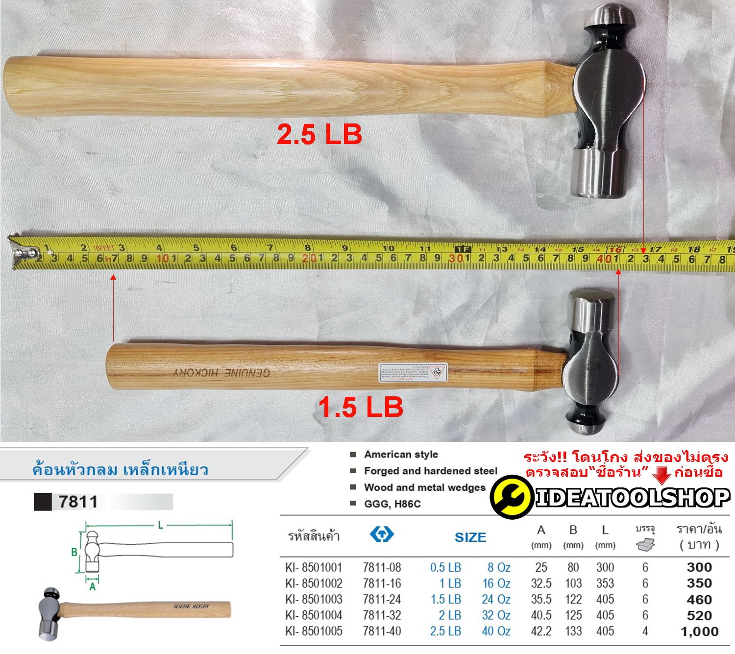 รุ่น 7811-24 สเปคสินค้า ขนาด 1.1/2 LB.