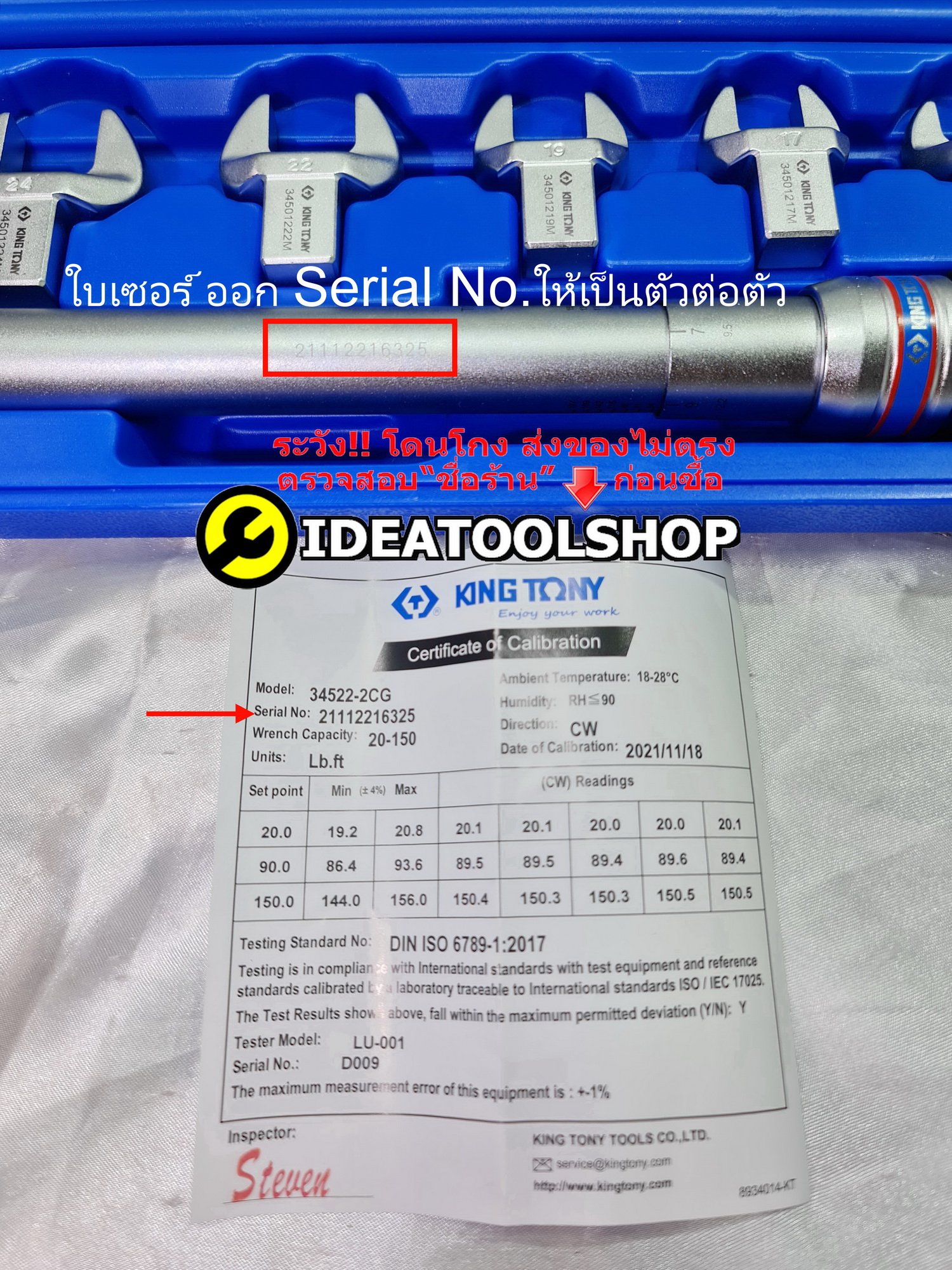 KINGTONY INTERCHANGEABLE TORQUE WRENCH SET - ประแจด้ามปอนด์ 1/2" 20-150Ft 11ชิ้น
