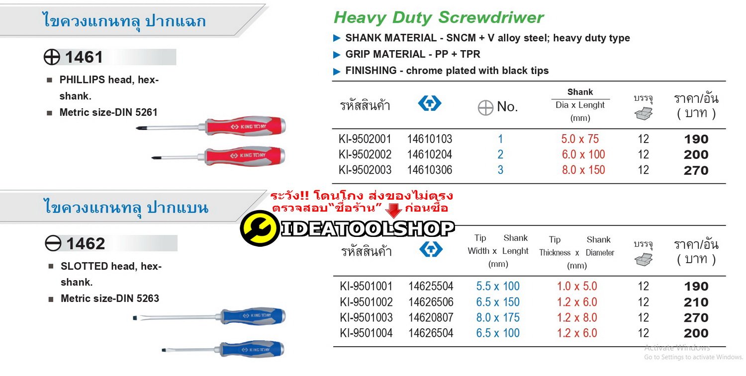 ของแท้!! ไขควง KINGTONY รุ่น 1461 / 1462 แบบแกนทะลุ ตอกได้ แกนทลุ สี่แฉก ปากแบน ปากแฉก เล็ก ใหญ่ คิงโทนี่ ไขควงแกนทะล