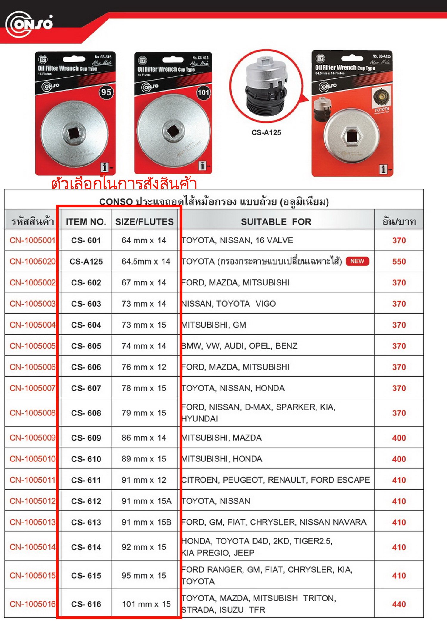 CONSO แท้!! ฝาถอดกรองน้ำมันเครื่อง สำหรับรถทุกรุ่น [เลือกรุ่นตามแคตตาล็อค] ถ้วยถอดกรองน้ำมันเครื่อง ถอดกรองน้ำมันเครื่อง