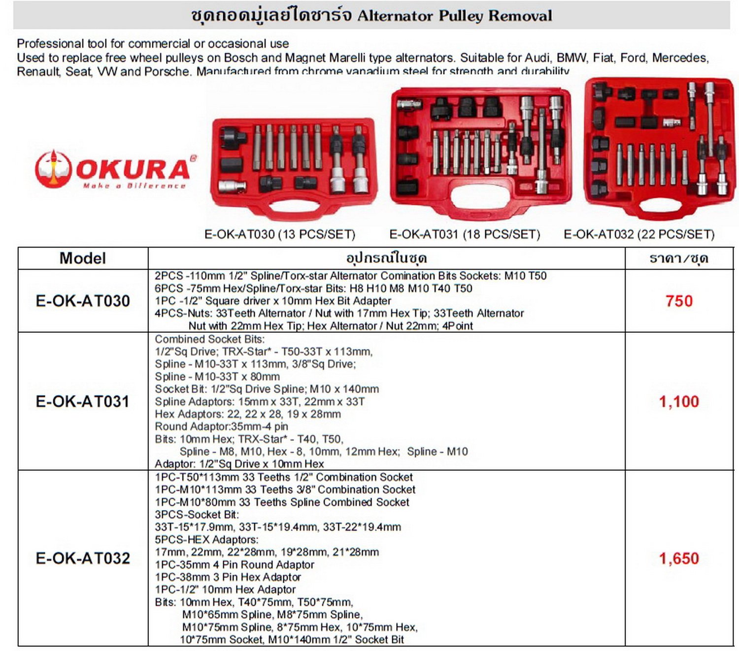 ชุดถอดไดชาร์จ 22ตัว ชุดถอดไดชาร์จ 18ตัว ชุดถอดไดชาร์จ 13ตัว OKURA ถูกที่สุด