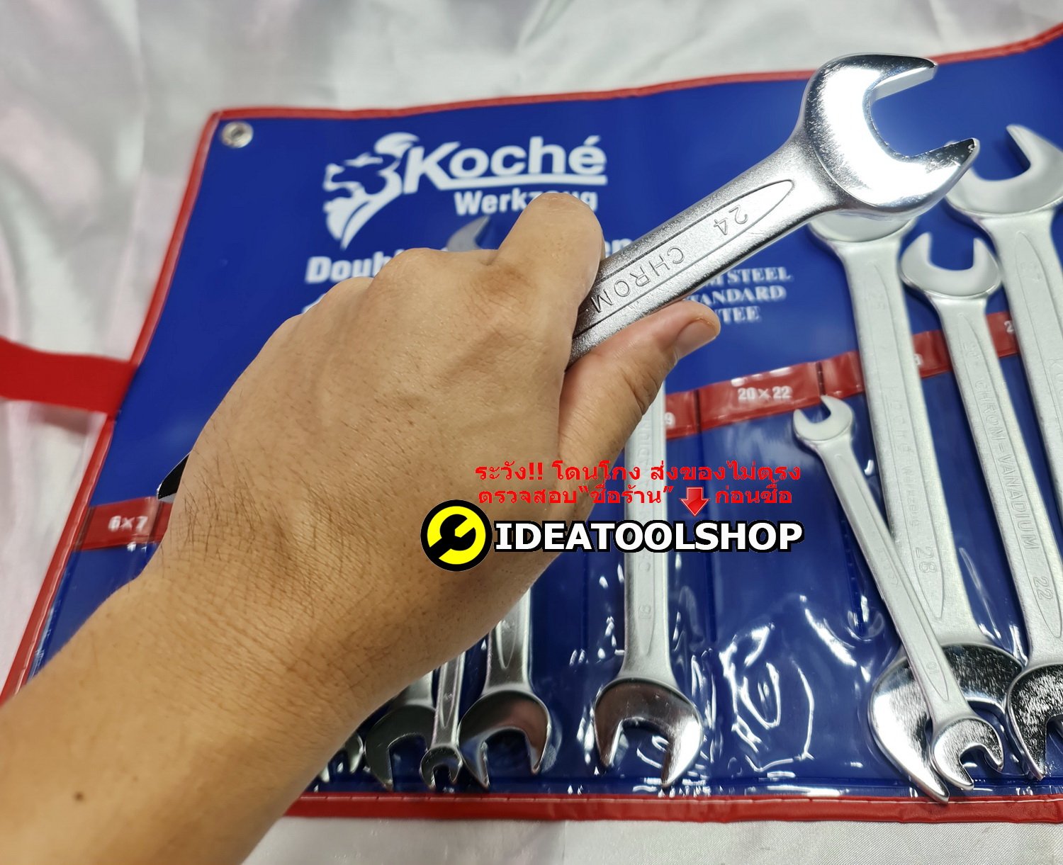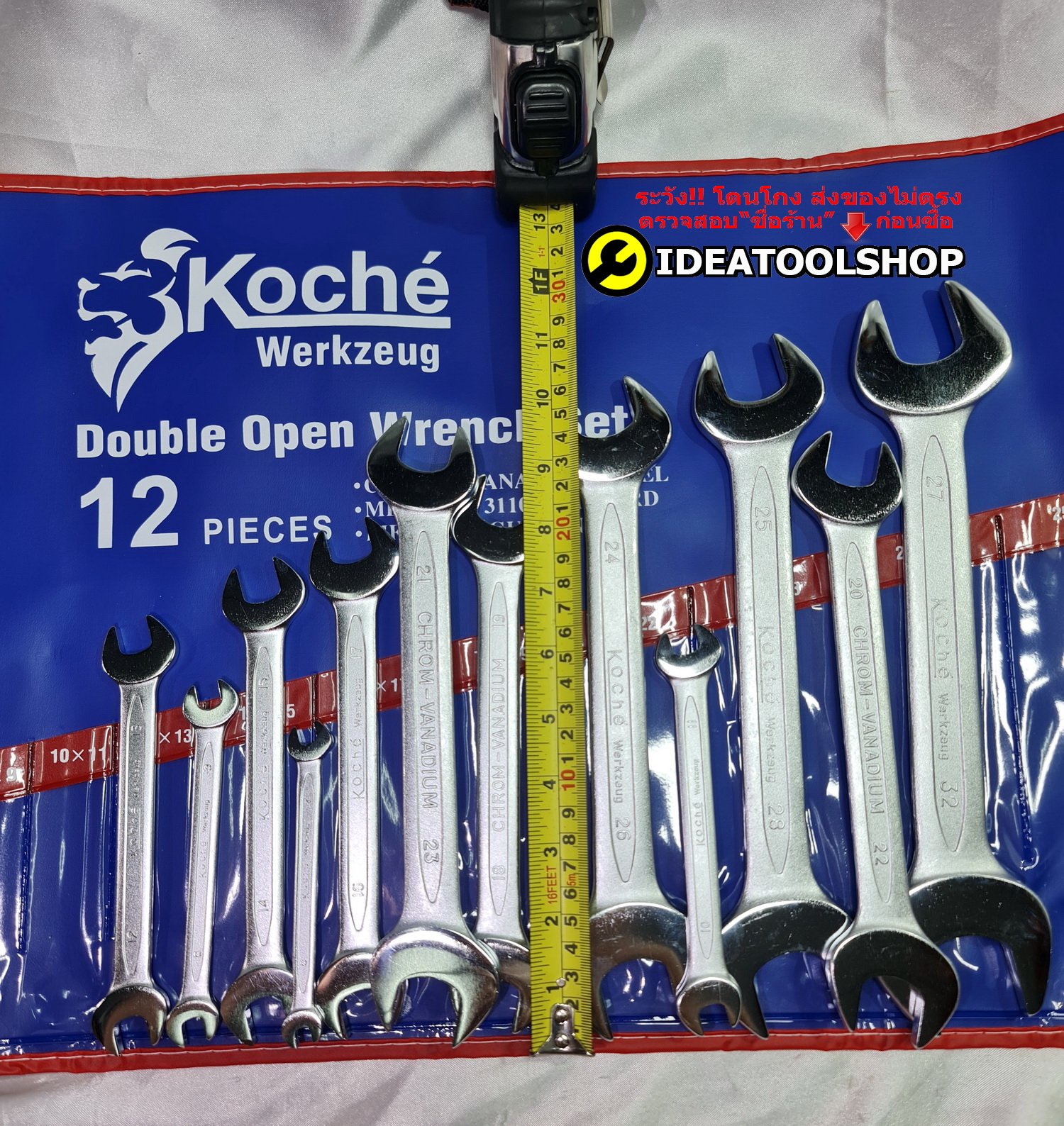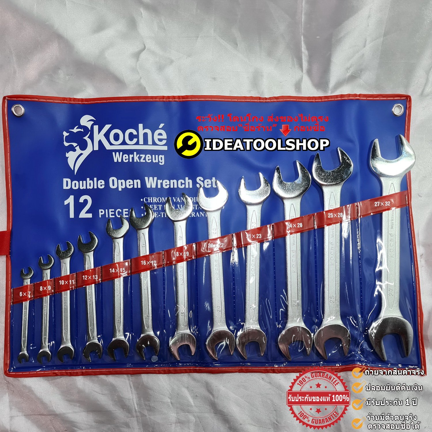 KOCHE ชุดประแจปากตาย 12 ตัวชุด ขนาด 6 - 32 มม. ขนาดตั้งแต่ 6x7, 8x9, 10x11, 12x13, 14x15, 16x17, 18x19, 20x22, 21x23, 24x26, 25x28, 27x32 มม. -จัดเก็บในซองไนล่อน พกพาสะดวก