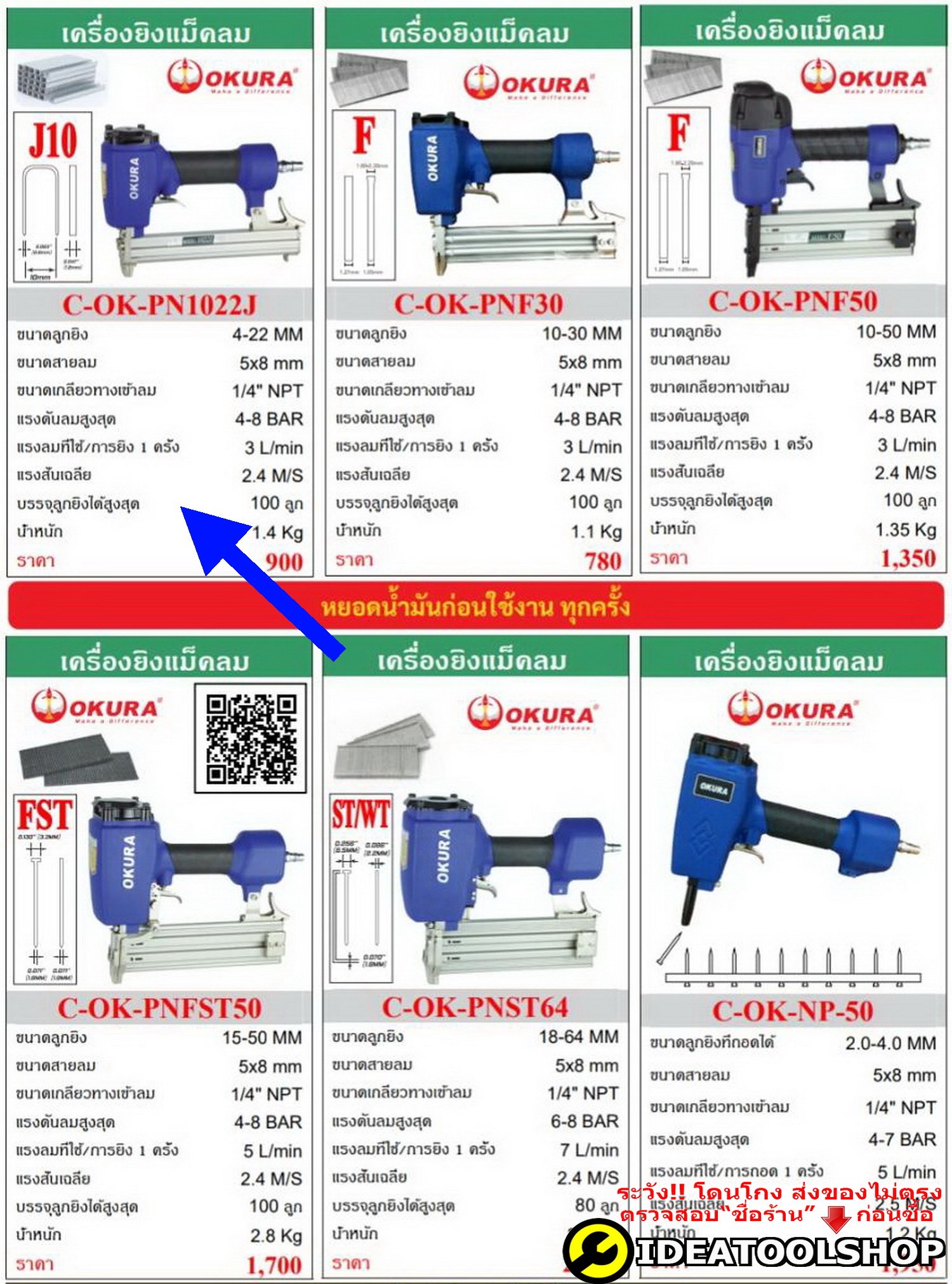 รายละเอียดสินค้า ปืนยิงแม็กลม ขาคู่ OKURA 1022J Mod.C-OK-PN1022J