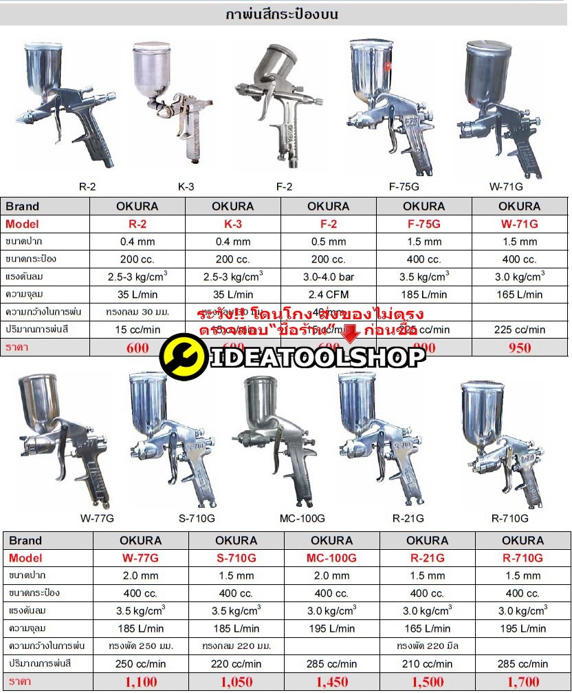 เป็นกาพ่นสีนำเข้าจากประเทศไต้หวัน สินค้าคุณภาพดี มีความทนทานและคุณภาพดีกว่ากาพ่นสีทั่วไปในท้องตลาด เนื่องจากวัสดุอย่างดี ทั้งตัวปืนและอุปกรณ์ภายในเป็น สแตนเลสทั้งหมด ทำให้การพ่นสีออกมาได้ดีและระเอียดคงที่ เหมาะสำหรับงานอู่สีคุณภาพ