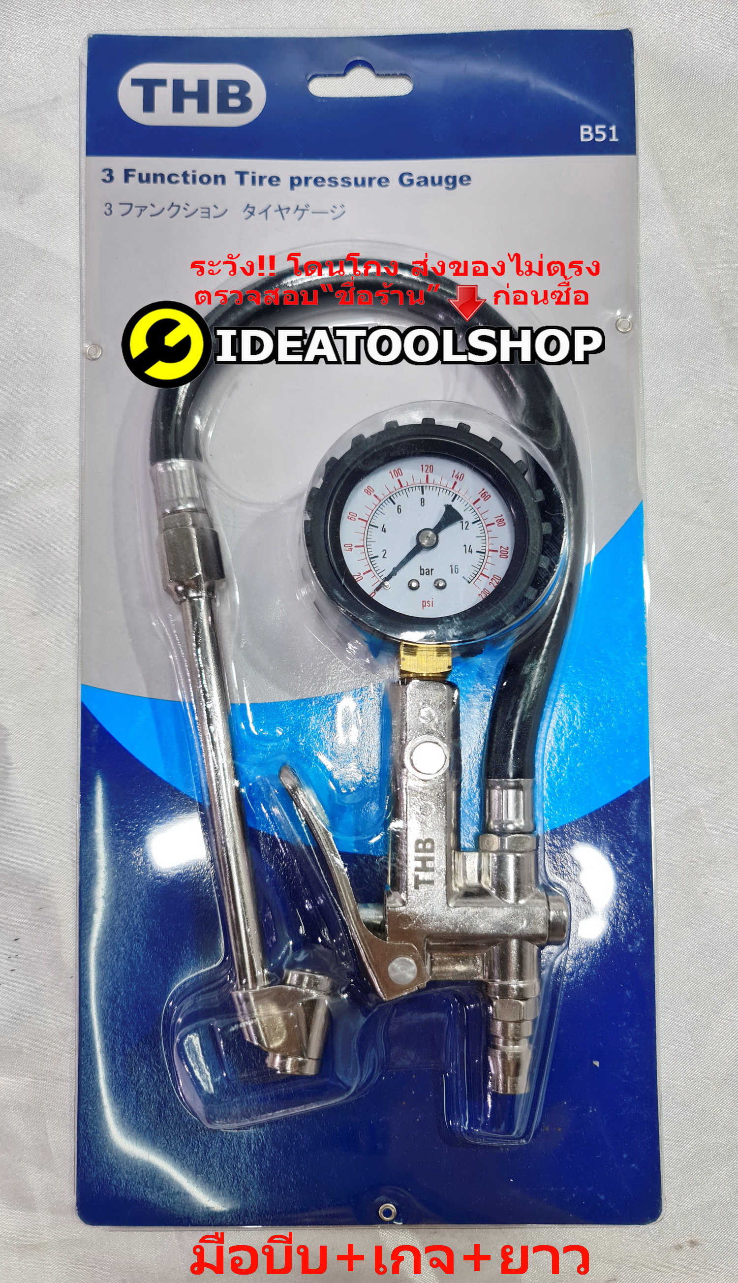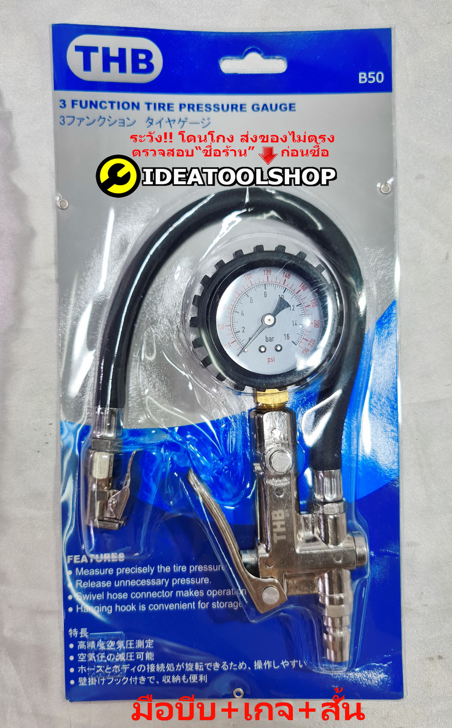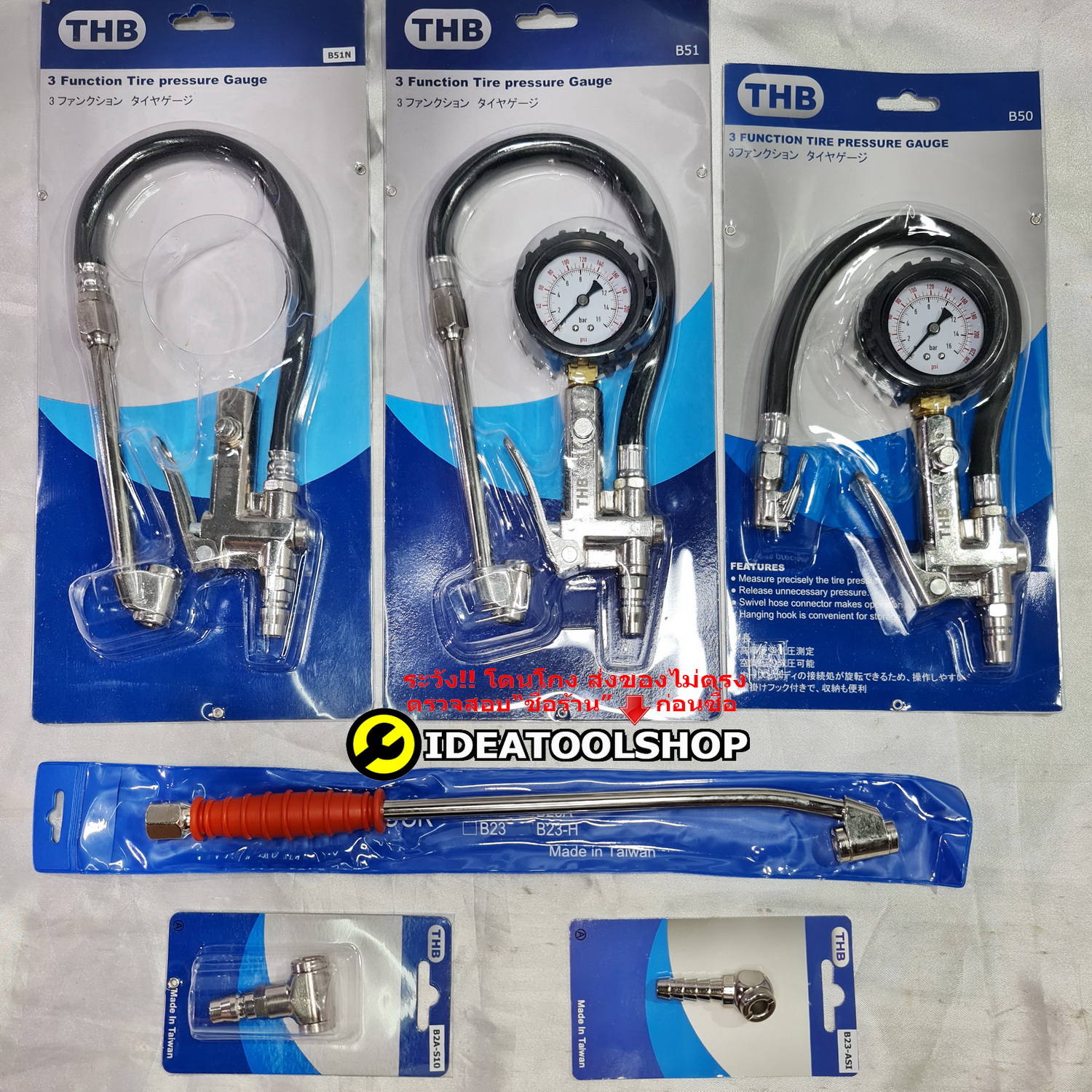 [ TAIWAN แท้ ] เติมลมยางรถยนต์ THB แบบ มือบีบ มีเกจวัด และ หัวเดี่ยว 2หัว / เติมลม ที่เติมลม แบบยาว หัวเติมลม ปืนเติมลม