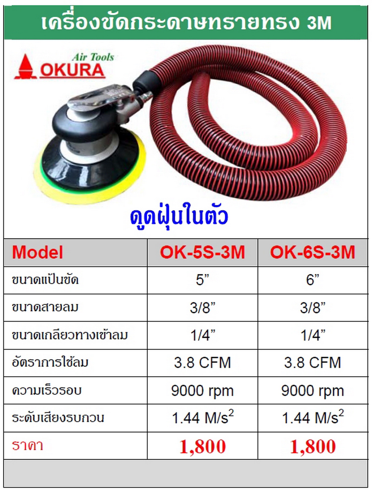 ของแท้!! ขัดสีรถยนต์ กลม OKURA [ ทรง 3M ] มีให้เลือก 5นิ้ว / 6นิ้ว ขัดสี ขัดสีลม ลบรอย ขัดสีโป้ว เครื่องขัดกระดาษทราย