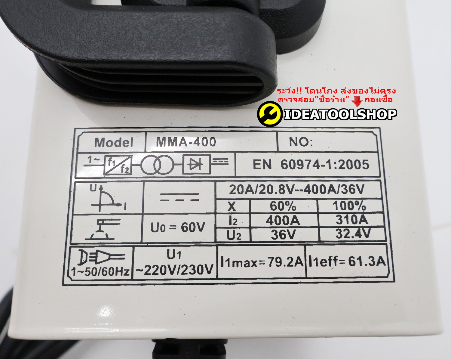 *ข้อมูลจำเพาะ ของตู้เชื่อม MMA-400 RSK