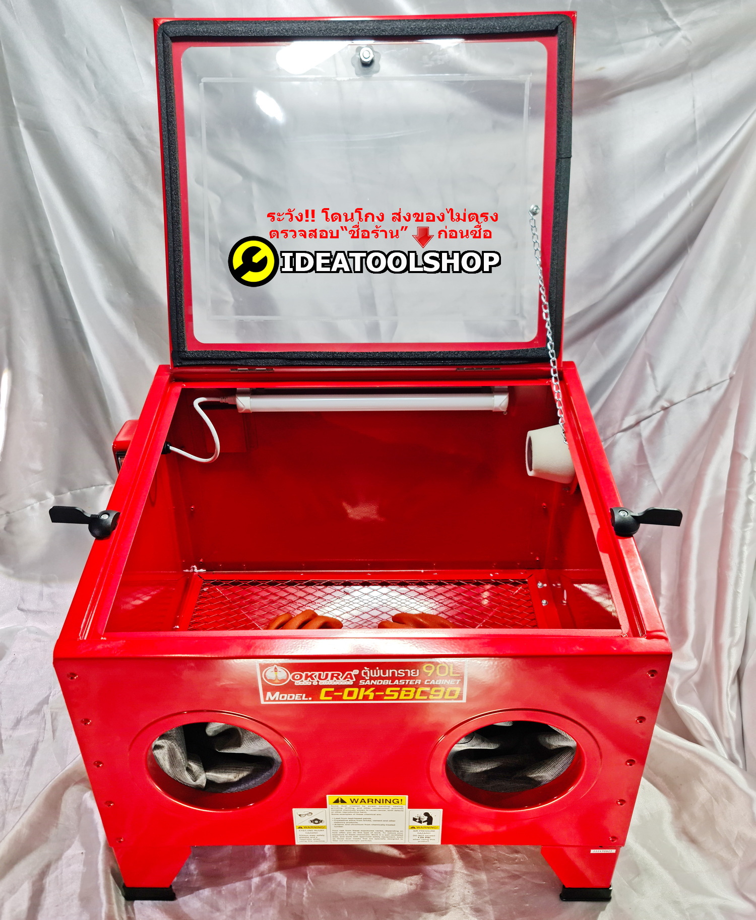 ตู้พ่นทราย 90 ลิตร ตู้ยิงทราย OKURA SBC-90 ใช้กับปั้มลมขนาด 50 ลิตร ขึ้นไป