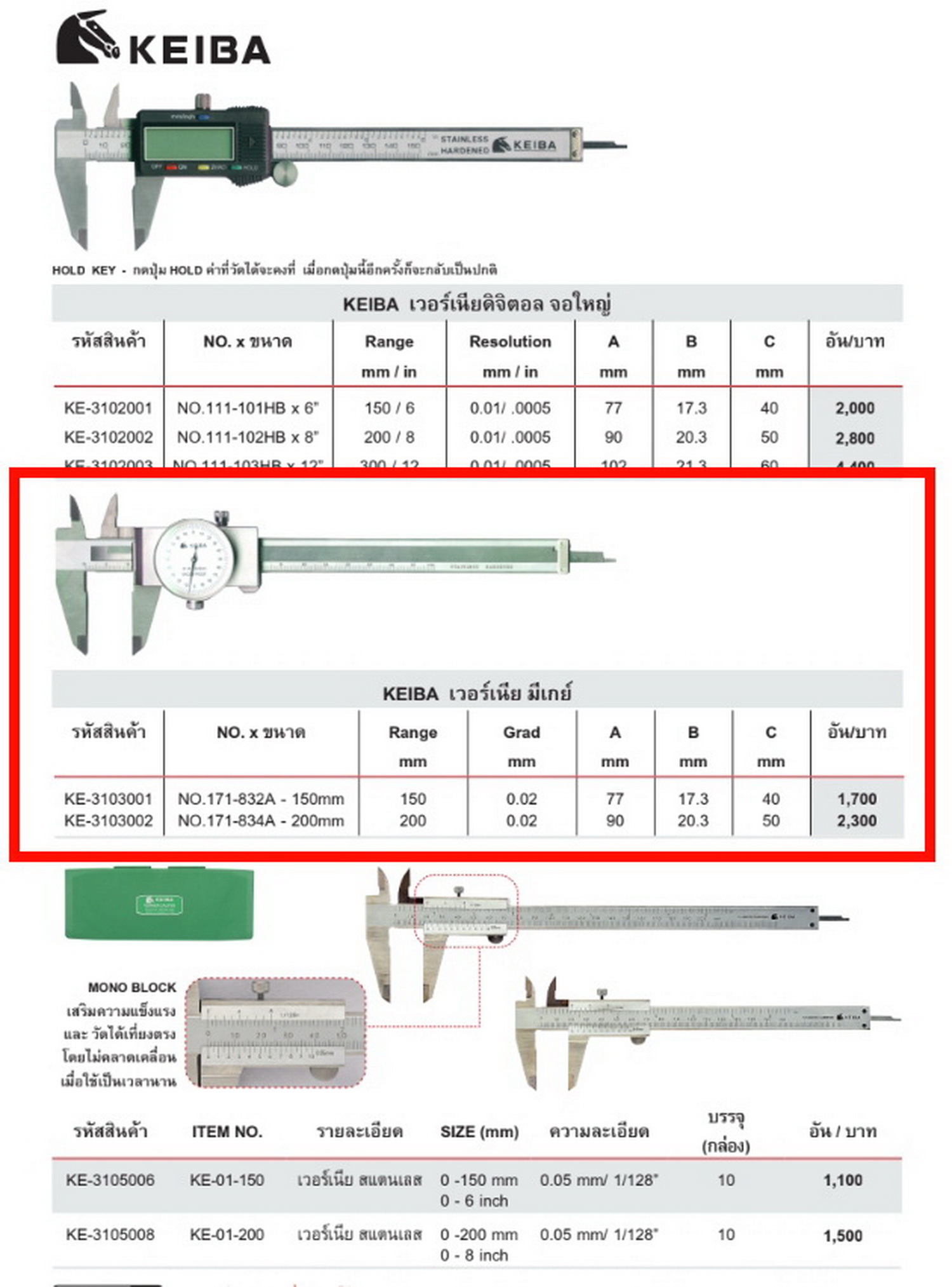 ของแท้!! เวอร์เนียนาฬิกา DIAL CALIPER ยี่ห้อ KEIBA 6" 8" นิ้ว เวอร์เนียคาลิปเปอร์ KEIBA เวอร์เนีย ไดอัล ไดอัลคาลิปเปอร์ เวอร์เนียร์แบบเข็ม 150 , 200 มม.