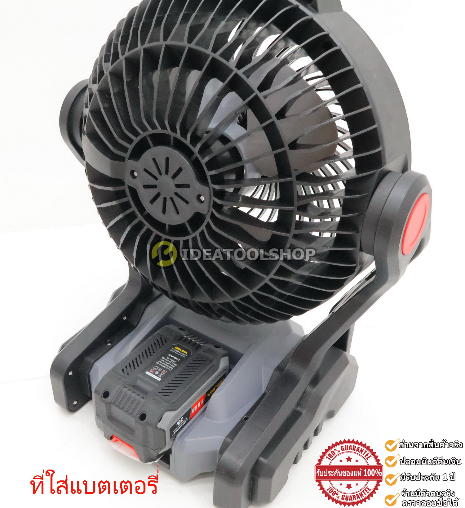 -ลมแรง เย็นนาน 8 ชั่วโมง (ที่ระดับความต่ำสุด) / ระดับแรงสุด 4 ชั่วโมง (ที่แบต 4.0Ah)