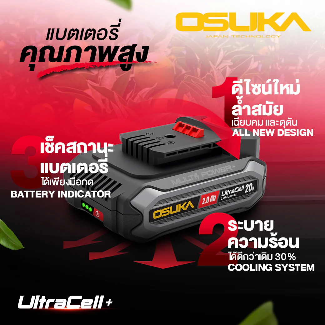 - แบตทน ใช้งานได้นาน, ไม่เสื่อมง่าย, ด้วยแบตเตอรี่ Ultracell+ คุณภาพสูง พร้อมไฟเช็คสถานะแบตBattery